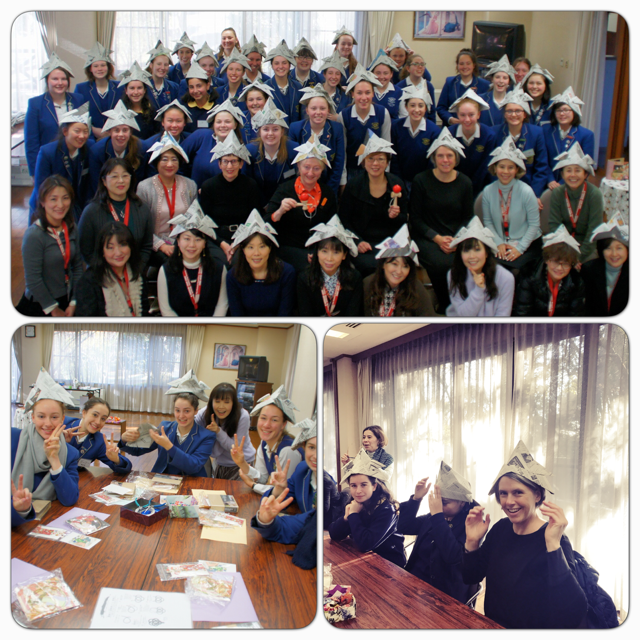 濱田会長による歓迎の挨拶の後、今年は新聞紙を使った兜作り、水引と折り紙でデコレーションするアルバムおよびカード作りを行いました。そして最後に皆で兜を被って記念撮影。