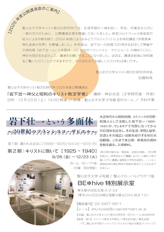 岩下壮一神父特別展 第2期と講演会のご案内
